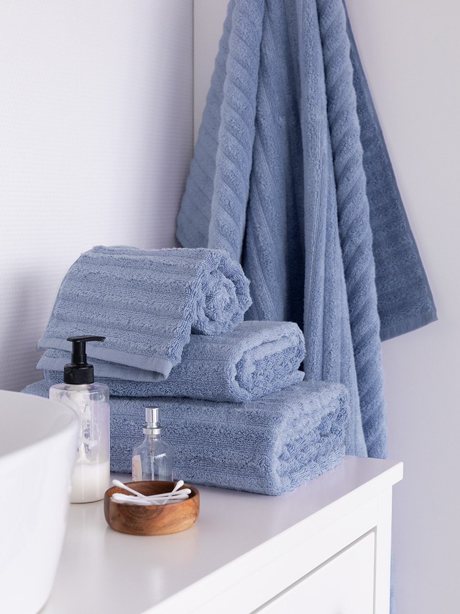 Полотенце махровое 100x150см DE'NASTIA Узкая Волна 500гр синий хлопок