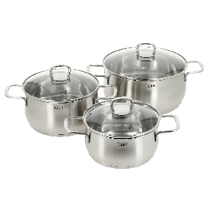 "Материал корпуса - нержавеющая сталь 18/10Крышки - термостойкое стекло, нержавеющая сталь 18/10Ручки - нержавеющая сталь 18/10Полировка- матовая. Подходит для всех видов плит. "