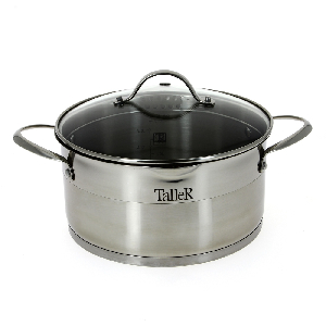 Кастрюля марки Taller оснащена удобными стальными ненагревающимися ручками. Форма края кастрюли предусматривает желобок для удобного слива жидкости. Крышка кастрюли выполнена из термостойкого стекла с отверстием для выхода пара. Удобные отметки литража на внутренней поверхности посуды позволяют не использовать при приготовлении дополнительную мерную посуду. Идеальное распределение тепла обеспечивается капсулированным дном с алюминиевой вставкой. Кастрюля изготовлена из высококачественной нержавеющей стали, которая отличается прочностью, устойчивостью к коррозии и отсутствием вредных соединений при контакте с продуктами. Кастрюля подходит для всех типов плит, включая индукционную, её можно мыть в посудомоечной машине.