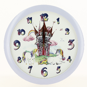 Настенные часы Вега П1-13/7-314 Замок с единорогами настенные из пластика. Циферблат имеет арабские цифры и стрелки - часовую, минутную и секундную. Также часы имеют надежный кварцевый механизм и работают от батарейки. Диаметр 28,5 см.