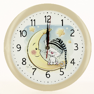 Часы настенные часы Вега П1-14/7-316 Котёнок на луне настенные из пластика. Циферблат имеет арабские цифры и стрелки - часовую, минутную и секундную. Также часы имеют надежный кварцевый механизм и работают от батарейки. Диаметр 28,5 см.