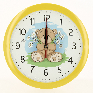 Настенные часы Вега П1-2/7-318 Мишка настенные из пластика. Циферблат имеет арабские цифры и стрелки - часовую, минутную и секундную. Также часы имеют надежный кварцевый механизм и работают от батарейки. Диаметр 28,5 см.