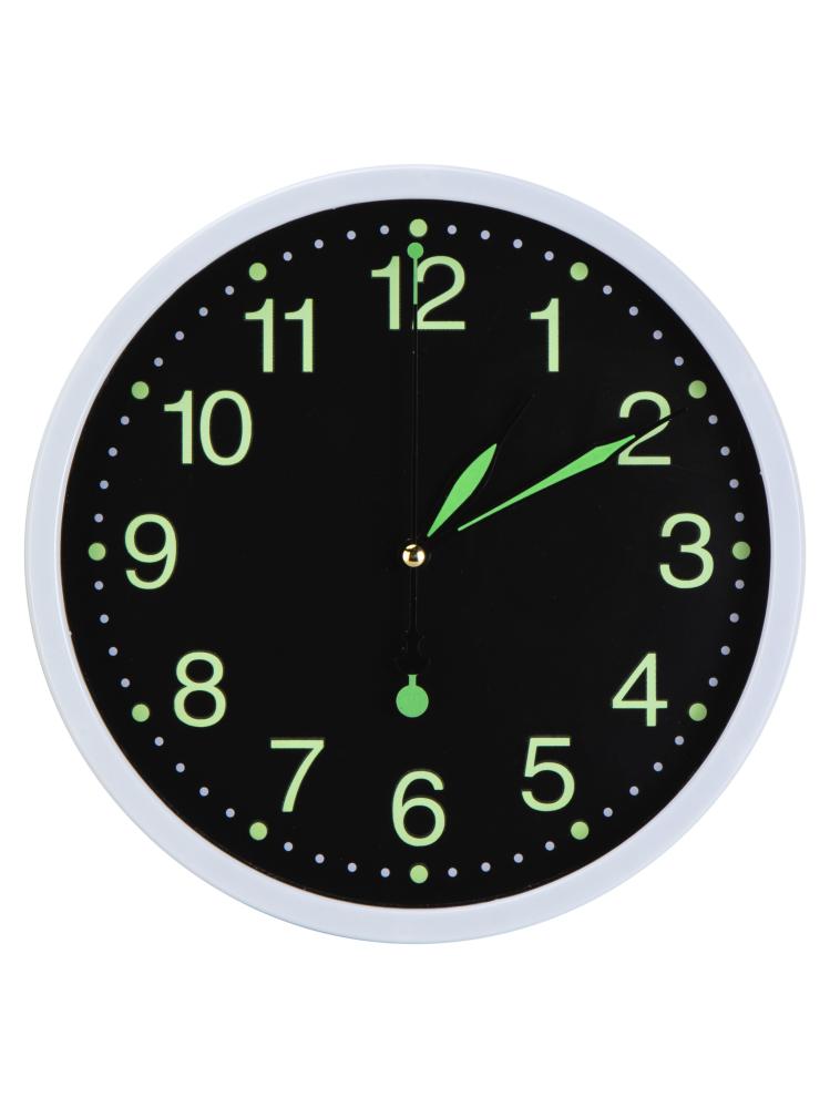 Часы настенные 25см FORA со светящимися цифрами круглые пластик/стекло