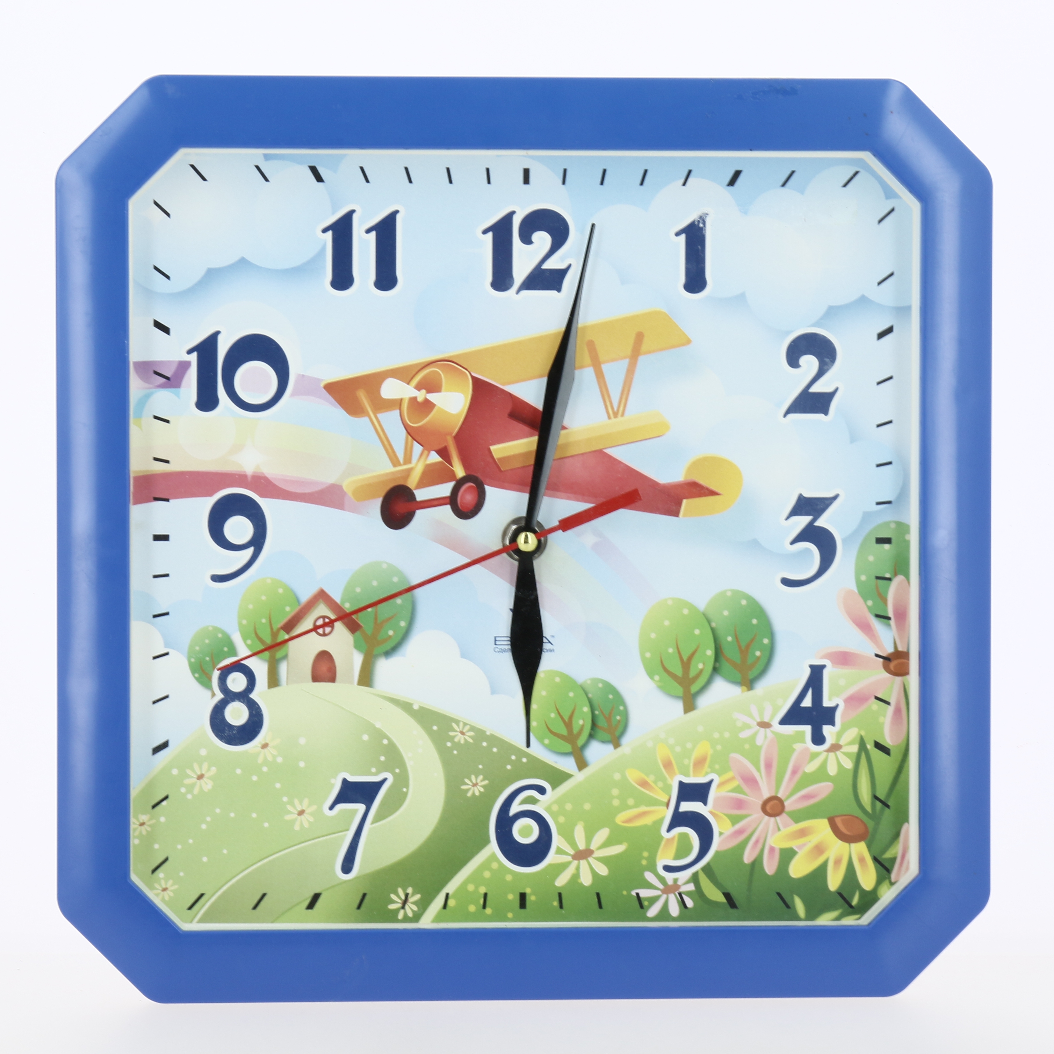 Яркие настенные часы Самолет с надежным кварцевым механизмом - это не только функциональное устройство, но и оригинальный элемент декора, который великолепно впишется в интерьер детской комнаты.