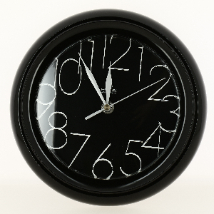 Цифры крупные белого цвета, секундная стрелка красного цвета. Ход секундной стрелки плавный и тихий.