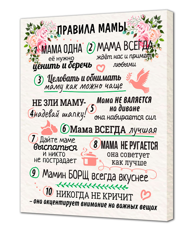 Картина на холсте 40х50см ПОСТЕР-ЛАЙН Правила мамы 2 Экологически чистые материалы и высококачественная печать делают изображение ярким и красочным