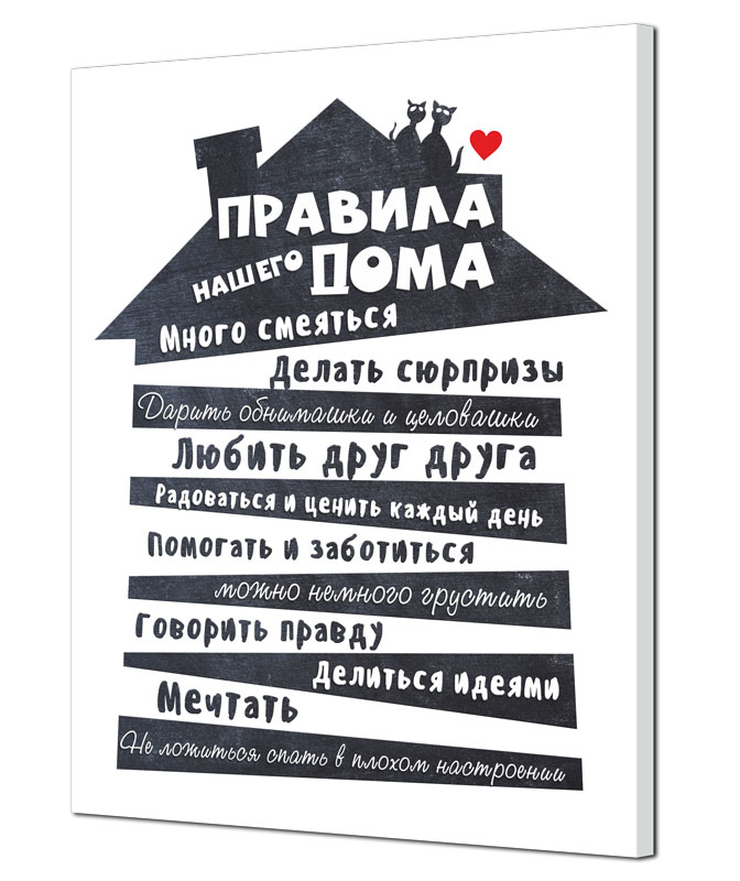Картина на холсте 40х50см ПОСТЕР-ЛАЙН Правила дома Экологически чистые материалы и высококачественная печать делают изображение ярким и красочным