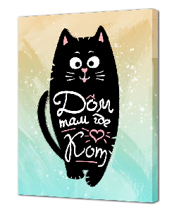 Картина на холсте Кот (принт) напечатана на плотной дизайнерской бумаге с текстурой под холст. В качестве твердой основы под репродукцию используется ДВП (оргалит) плотный прессованный древесный материал. С обратной стороны сюжета предусмотрен подвес для крепления на стену. Рама узкая, всего 0,5 см, отлегает от стены на 1,5 см. Таким образом достигается эффект объемности работы. Сюжет упакован в защитную термоусадочную пленку,