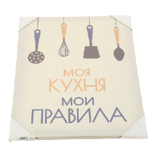 Картина на холсте Кухня 2 (принт) напечатана на плотной дизайнерской бумаге с текстурой под холст. В качестве твердой основы под репродукцию используется ДВП (оргалит) плотный прессованный древесный материал. С обратной стороны сюжета предусмотрен подвес для крепления на стену. Рама узкая, всего 0,5 см, отлегает от стены на 1,5 см. Таким образом достигается эффект объемности работы. Сюжет упакован в защитную термоусадочную пленку,