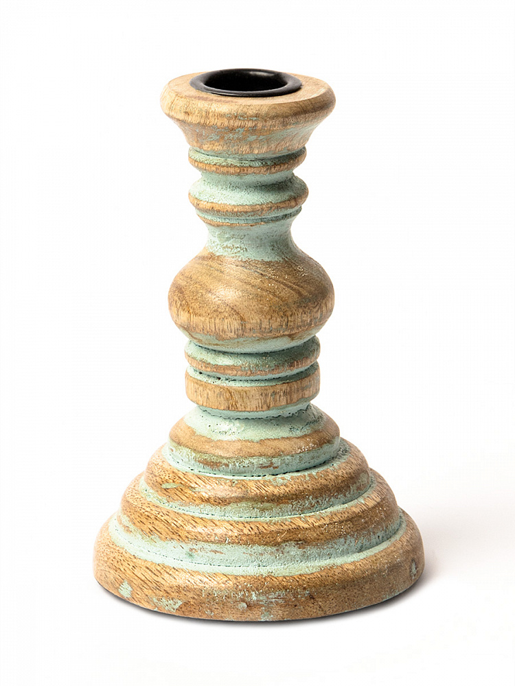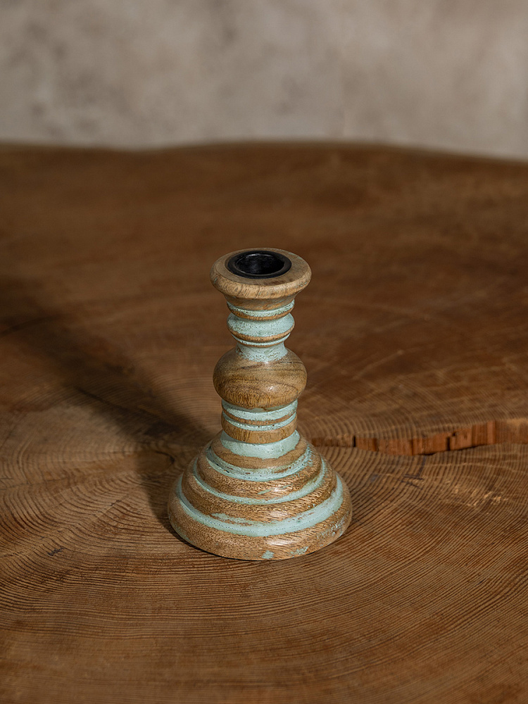 Подсвечник 10x10x15см DE'NASTIA голубой дерево манго