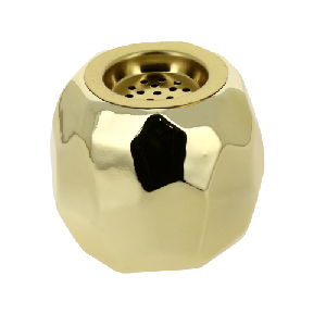 Декоративный подсвечник Многогранник послужит прекрасными декоративным элементом для оформления интерьера. Подсвечник выполнен из керамики и покрыт блестящим лаком цвета золота. Современные формы. Благородное исполнение.