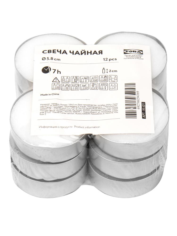 Свеча чайная 12шт 5,8х2см FORA парафин