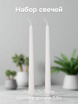 Набор свечей 2шт 2,2х25см FORA белый парафин