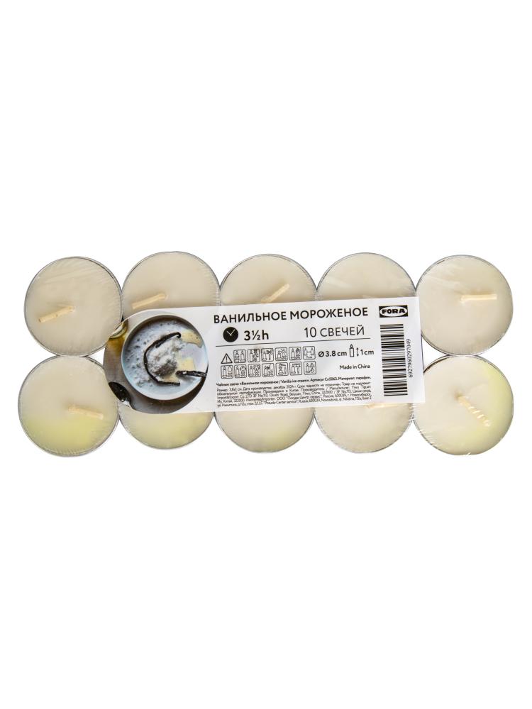 Набор свечей чайных 10шт 3,8х1см FORA ванильное морожное парафин