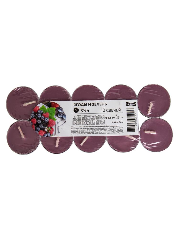Набор свечей чайных 10шт 3,8х1см FORA ягоды и зелень парафин