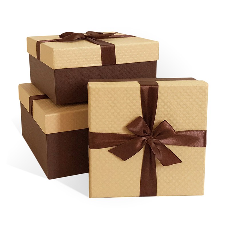Коробка подарочная 17x17x7см РОМБ-крупный с бантом карамель-шоколадный