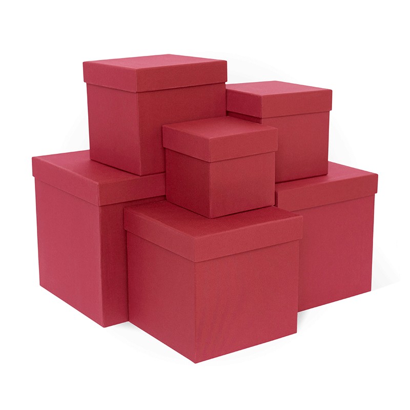 Коробка подарочная 21x21x21см РУТАУПАК тиснение ЛЕН красный картон