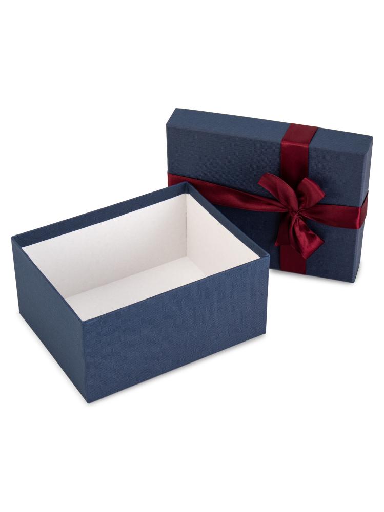 Коробка подарочная 23x19x13см РУТАУПАК бант тиснение РОГОЖКА синий картон