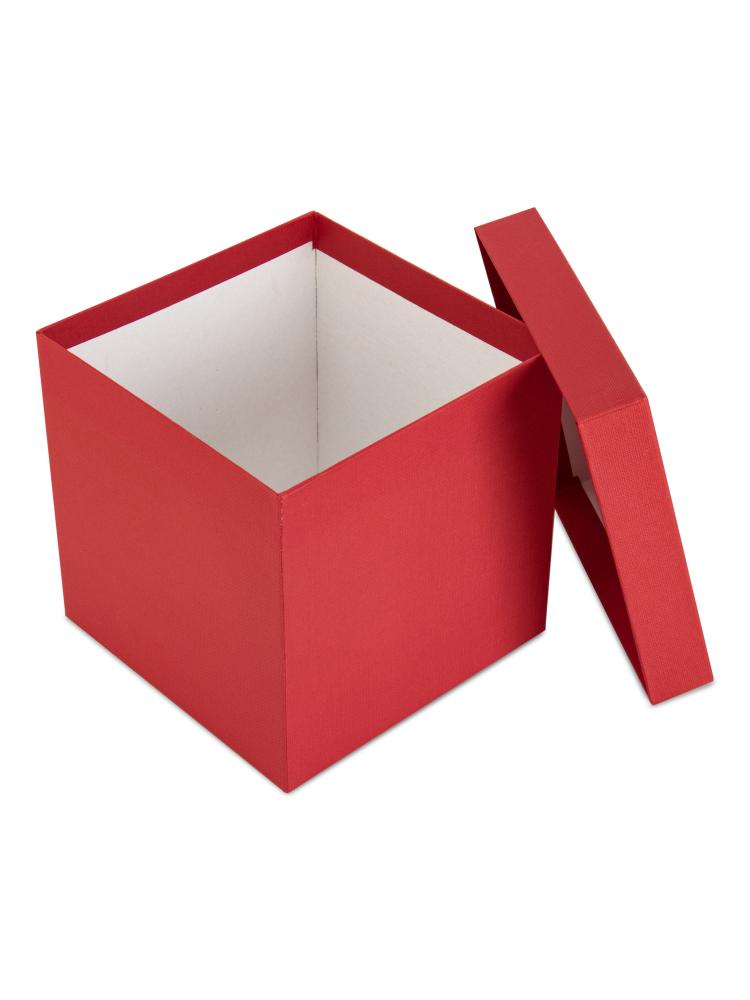 Коробка подарочная 13х13х13см РУТАУПАК тиснение ЛЕН куб красный