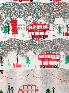 Бумага оберточная "Зимний город" для продукции бытового назначения с декоративным рисунком плотность 60г/м2 в рулоне 100х70см 82494