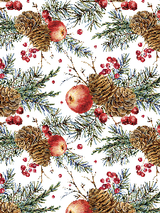 Бумага оберточная Яблоки на снегу для сувенирной продукции в рулонах с полноцветным декоративным рисунком плотность 90г/м2 100х70см 81756