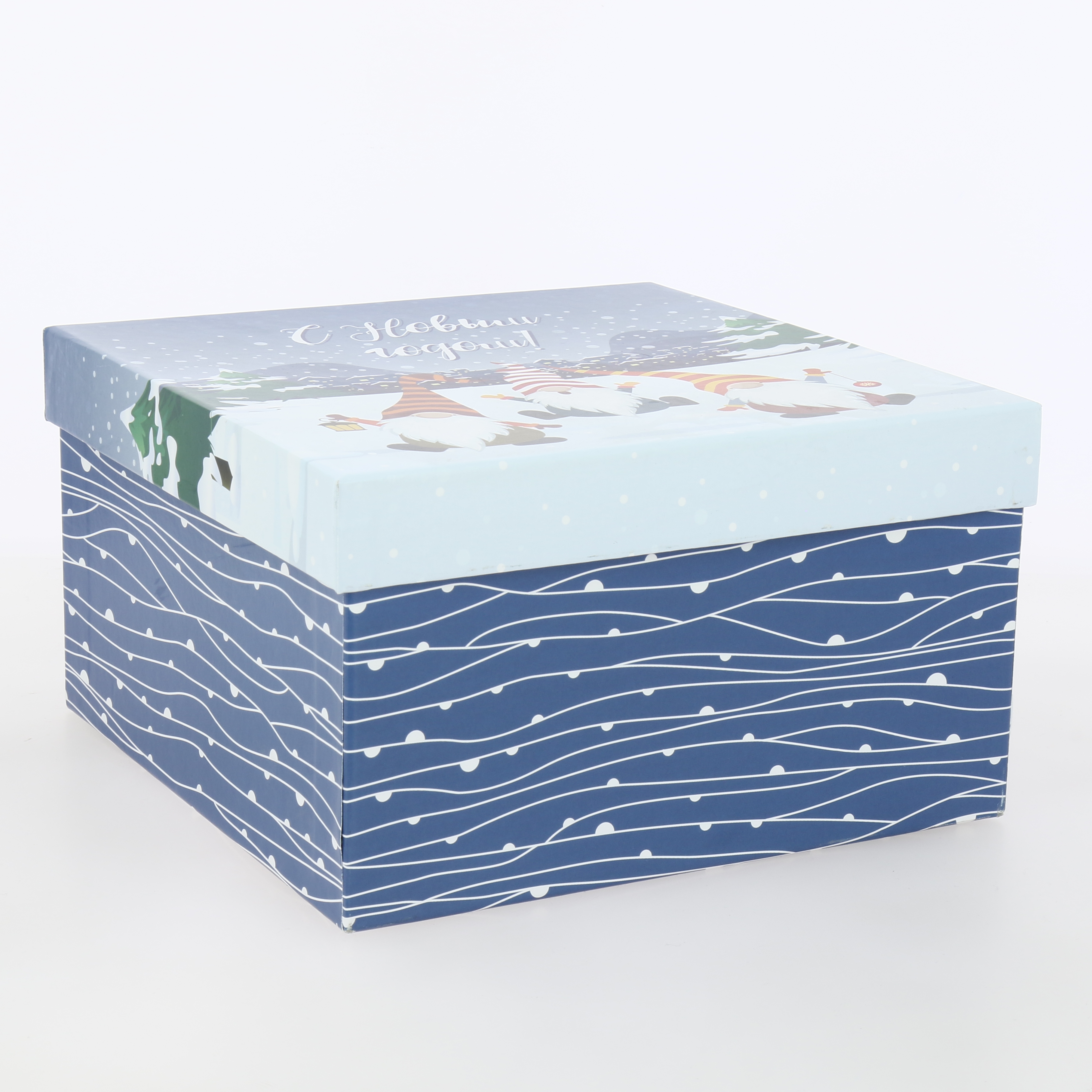 Коробка подарочная 23x23x13см Гномы квадратная синий