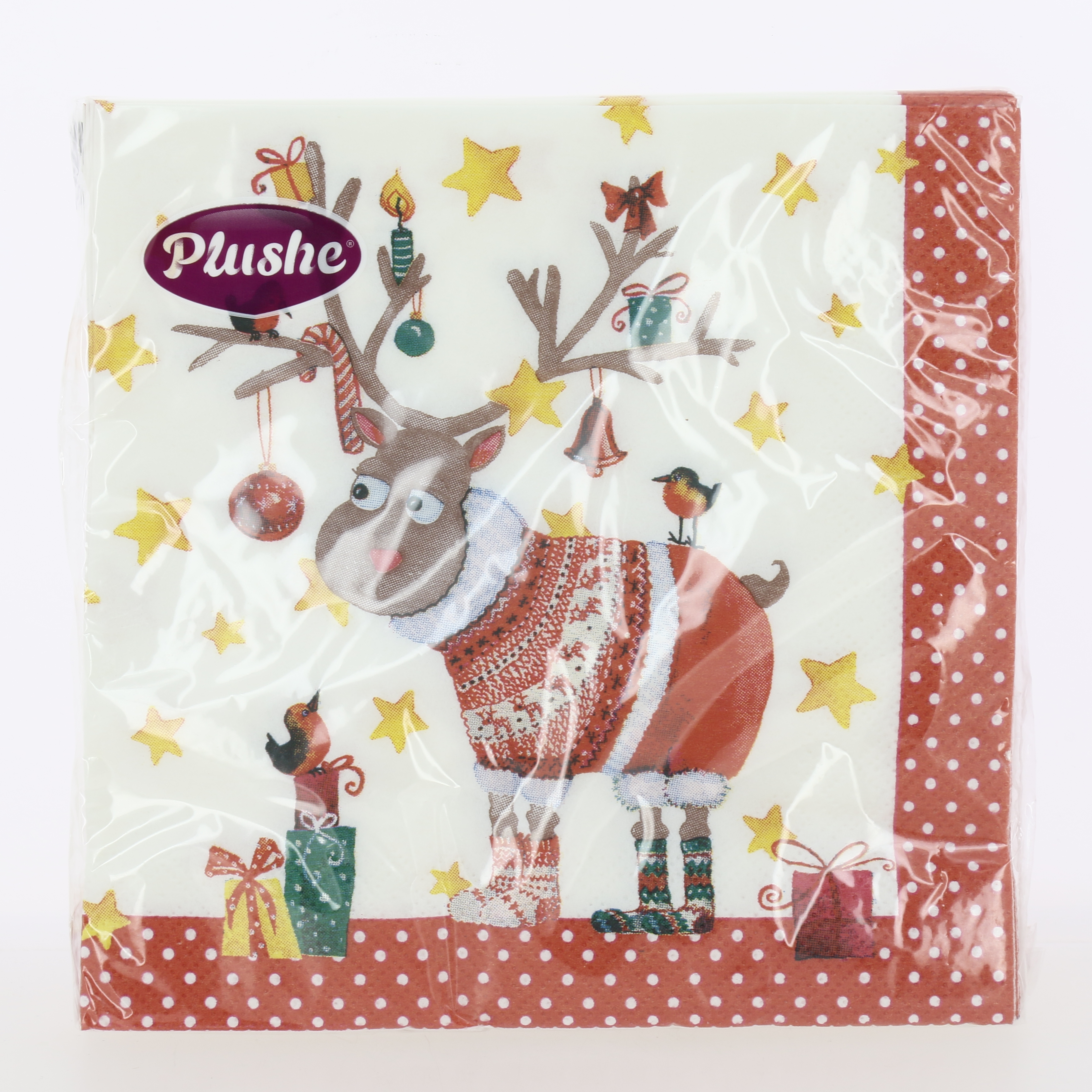 Салфетки бумажные 18шт 33х33см PLUSHE Олень с игрушками 3х слойные