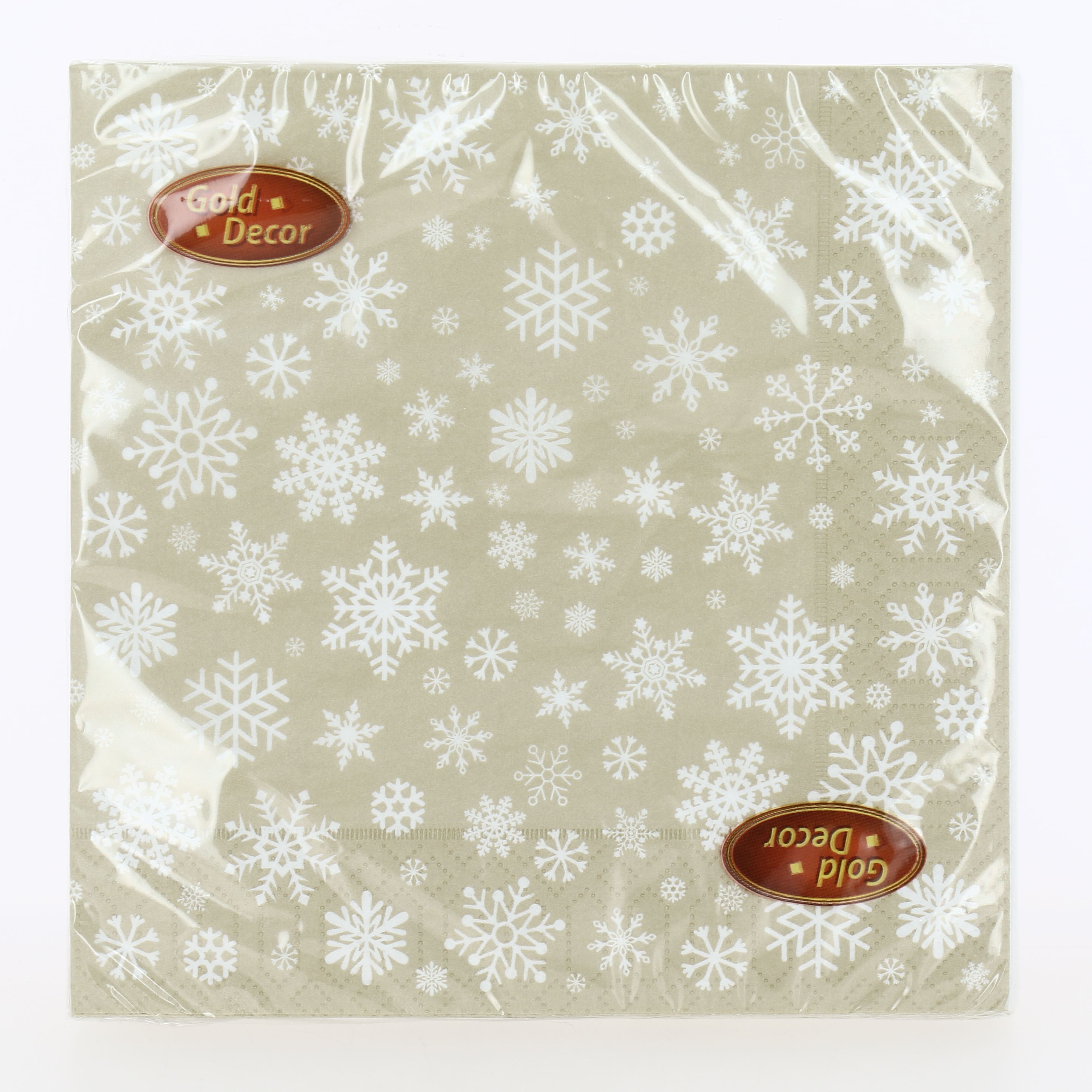Салфетки бумажные 33х33см 20л 3 слоя NEW LINE GOLD DECOR Рождественские снежинки золото металлизированные краски