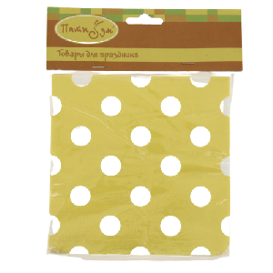 Трехслойная салфетка Горошек, используется совместно с другими элементами коллекции по дизайну (тарелки, стаканы, приборы и т.п.) как украшение стола или по своему непосредственному назначению.