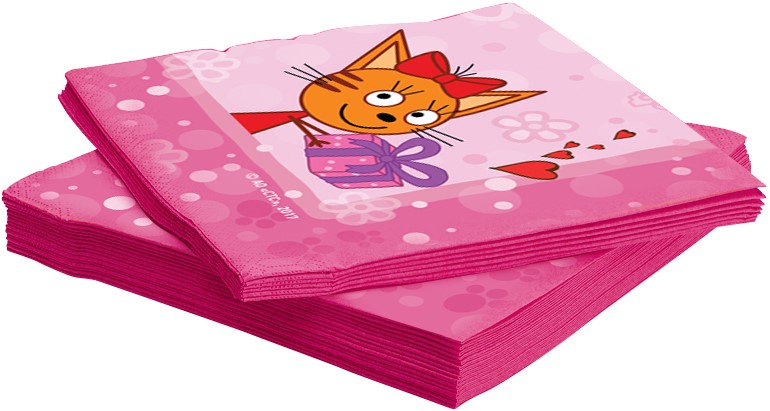 Салфетки для праздника 20шт 33х33см Дон Баллон Три Кота С Днем Рождения! розовый