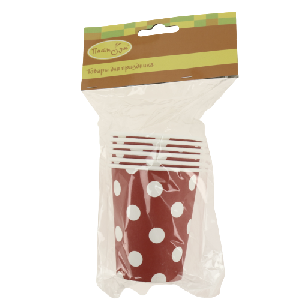 Бумажные стаканы Горошек используется совместно с другими элементами коллекции по дизайну (салфетки, приборы, скатерти и т.п.) как сервировка праздничного стола или по своему непосредственному назначению.