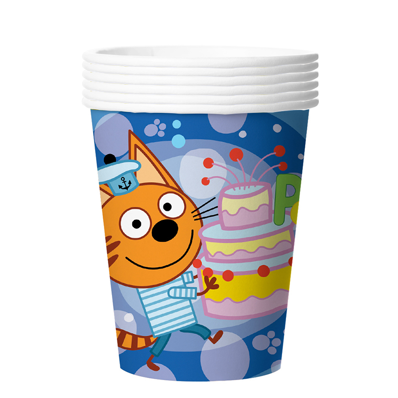 Набор стаканов для праздника 6шт 250мл Дон Баллон Три Кота С Днем Рождения! синий