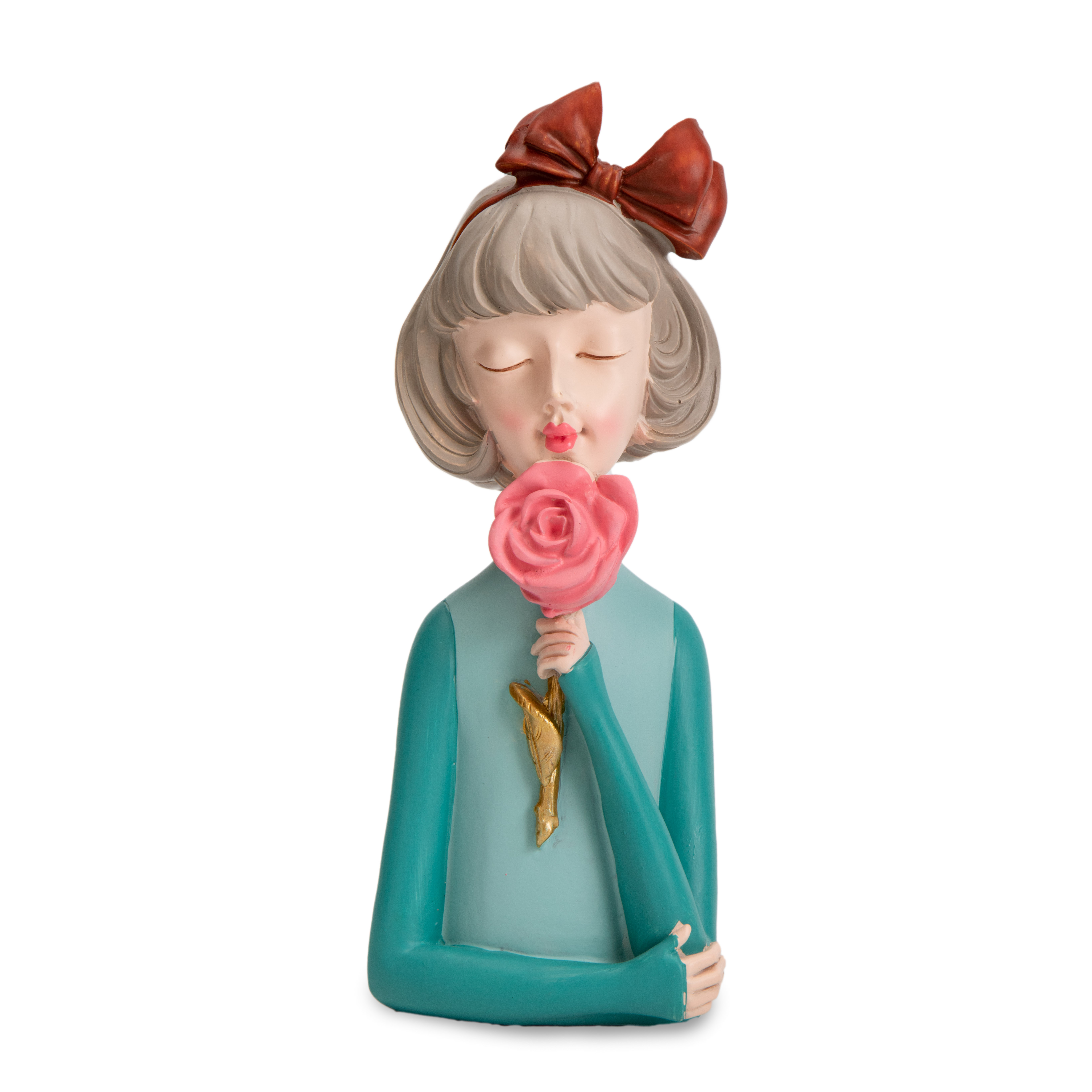 Фигура декоративная 19см Девушка с цветком