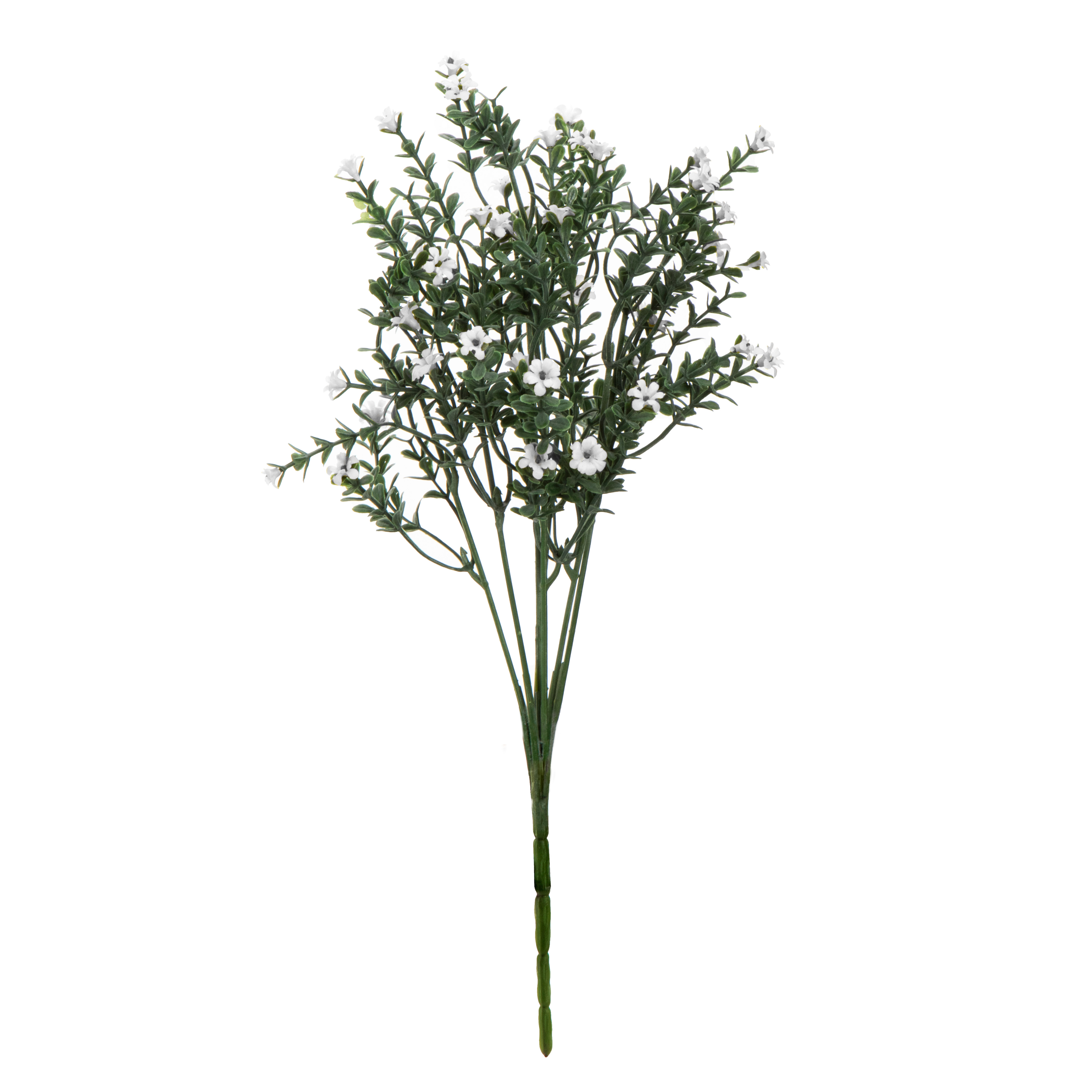 Цветок искусственный зелень 29см с мелкими белыми цветочками