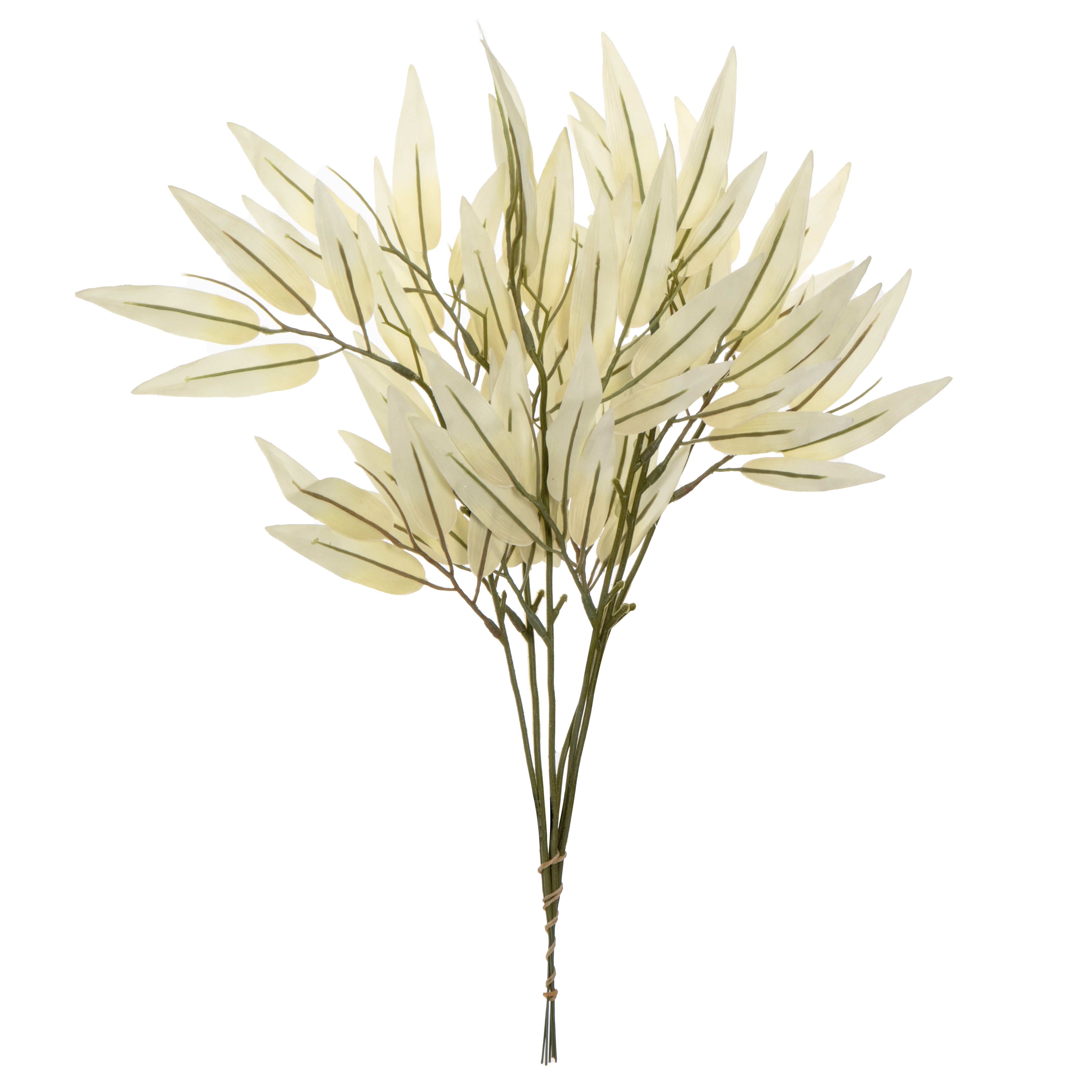 Цветок искусственный ветвь Листья бамбука 31,5см молочный