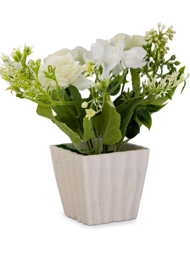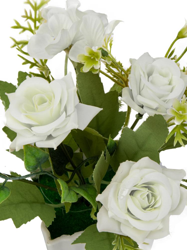 Цветок искусственный в кашпо Розы 19см белый пластик