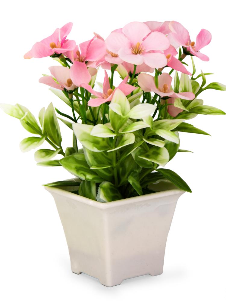 Цветок искусственный в кашпо Незабудка 16см розовый пластик