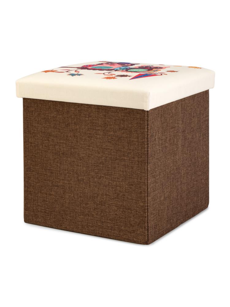 Пуфик куб 35х35х35см складной этно совы бежево-коричневый лен