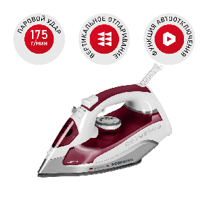 Подошва мощного утюга нагревается буквально за несколько секунд. Утюг стабильно держит температуру и не перегревается, что позволяет без опаски гладить одежду и текстиль из деликатных тканей.