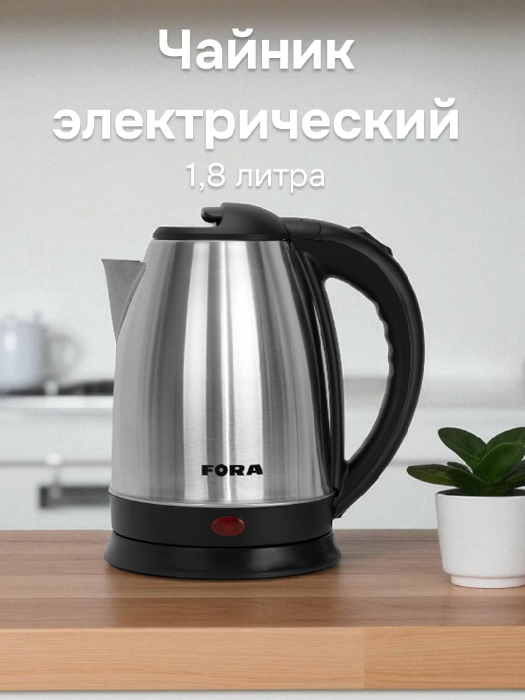 Чайник электрический 1,8л FORA напряжение 220В мощность 1800Вт нержавеющая сталь/пластик