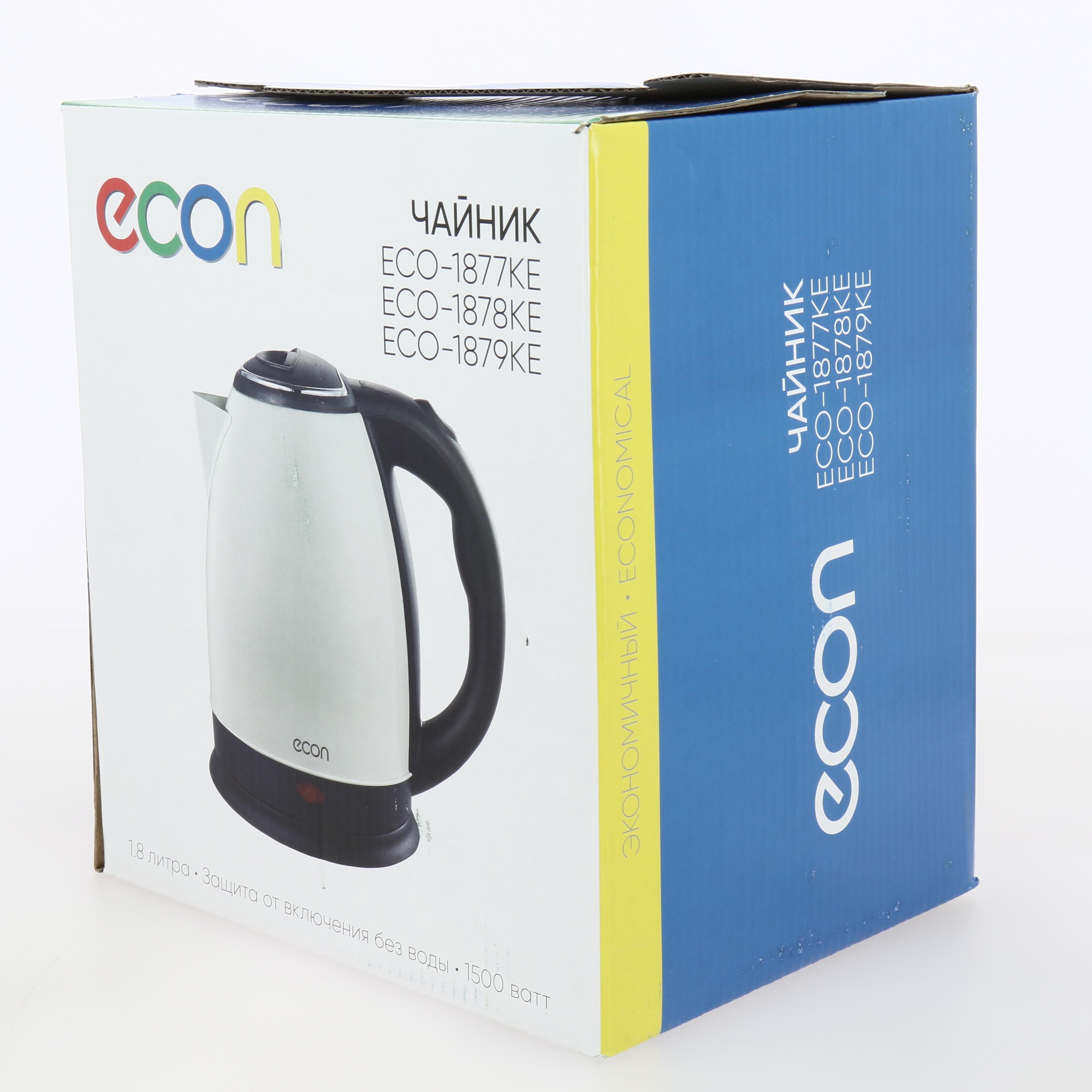 Чайник 1,8л ECON ECO-1878KE мощность1500Вт.Отключение при закипании, отсутствии воды. Вращение на подставке на360градусов. Черный металлический корпус