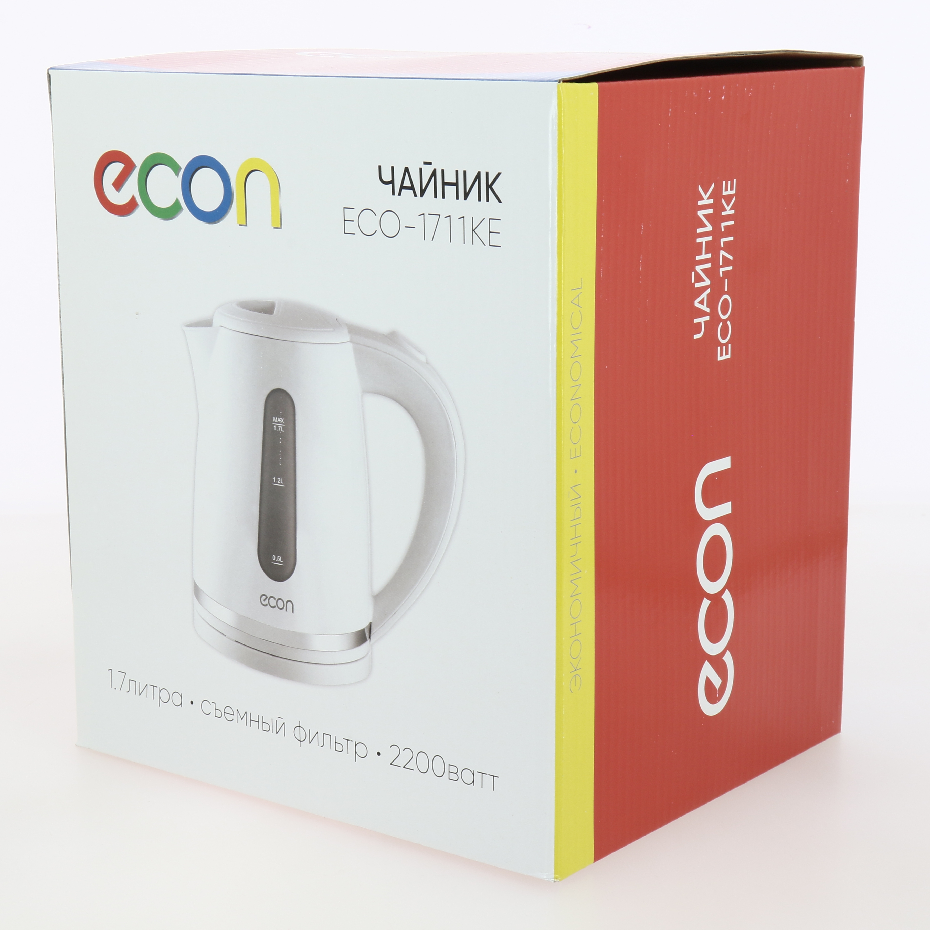 Чайник 1,7л ECON ECO-1711KE мощность 2200Вт. Светодиодная подсветка. Отключение при закипании, отсутствии воды. Корпус белый пластик