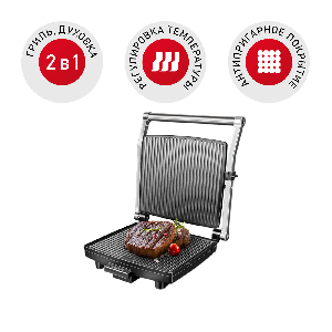 SteakMaster RGM-M800 ‒ это прибор 2 в 1, который совмещает в себе функции контактного гриля и духовки. Вы сможете готовить сочные мясные и рыбные стейки, жарить и запекать овощи и морепродукты, делать запеканки, пироги и разнообразные десерты.