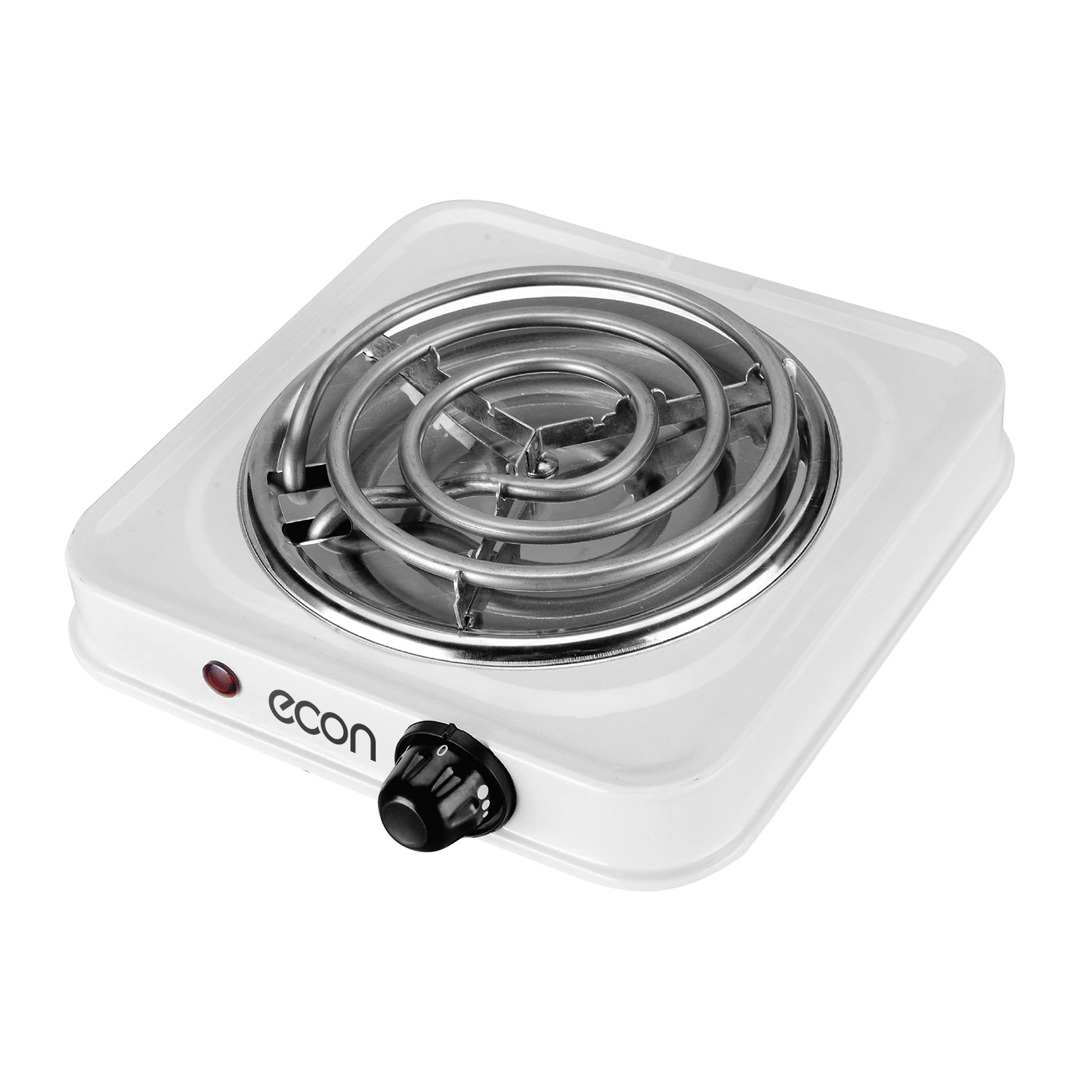Плитка электрическая 1 конфорка ECON ECO-110HP. Тип конфорок ТЭН. 144 мм. Мощность 1000вт. 5 уровней температуры. Защитное отключение. Белая. Металл.