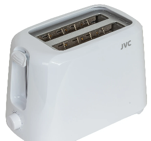 Тостер JVC мощность700Вт, 2ломтика, размер тоста 10х10см, 5степеней поджаривания, термоизолированный корпус, поддон для крошек, отсек для шнура, белый