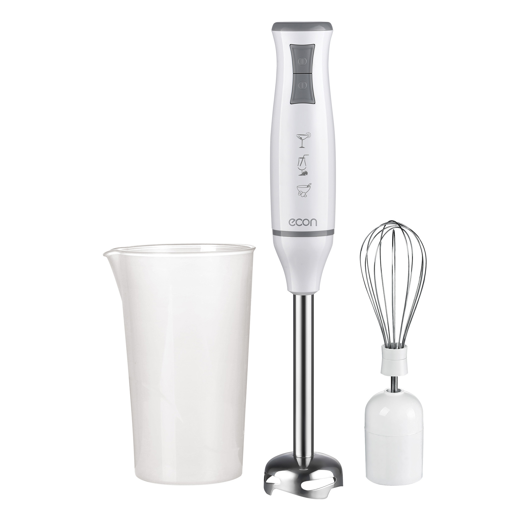 Блендер погружной 700мл 700Вт ECON импульсный режим работы 2-скорости насадка-блендер и съемная насадка-венчик из нержавеющей стали белый пластик