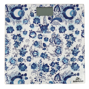 Яркие весы с росписью гжель точно не останутся незамеченными. Хорошо определяют вес. Работают всего от одной батарейки. Дополнительные преимущества весов: включаются всего одним прикосновением, отключение происходит самостоятельно, есть два индикатора (замена батарейки и перегрузка), быстрое обнуление.