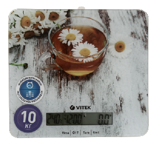 Кухонные весы VITEK 8008(MC) − функциональные весы, выполненные в белом корпусе с изображением ромашек и чашки чая. Модель представлена в виде квадратной платформы, защищенной прочным стеклом. Стеклянная поверхность весов способна выдерживать большой вес до 10 кг. Процесс взвешивания отличается высокой точностью вплоть до 1 гр, что делает весы незаменимыми для обычных пользователей, а также кондитеров, позволяя с высокой точностью взвешивать продукты.