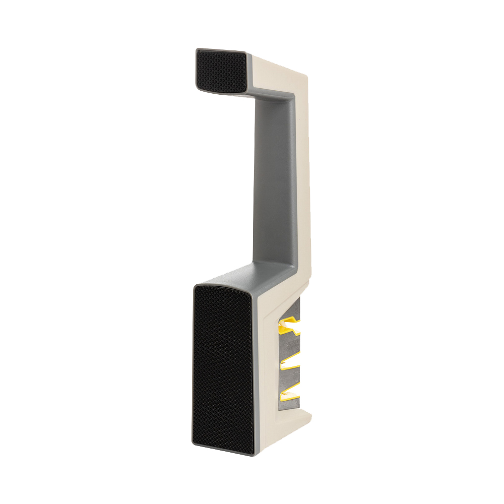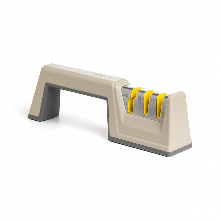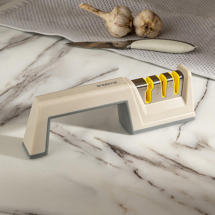 Точилка для ножей 22x4,5x6,7см DE'NASTIA трехэтапная заточка серый/желтый нержавеющая сталь/полипропилен/термопластичная резина/керамика