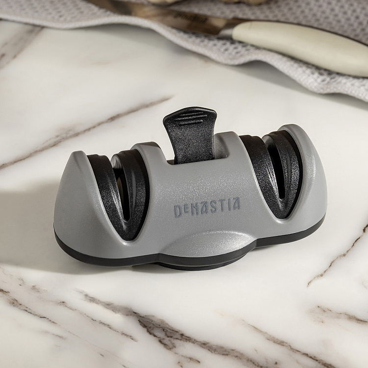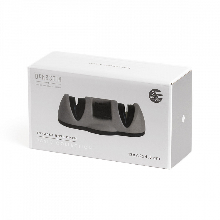 Точилка для ножей 13x7,2x4,5см DE'NASTIA с вакуумным креплением двухэтапная заточка черный/серый керамика/вольфрамовая сталь